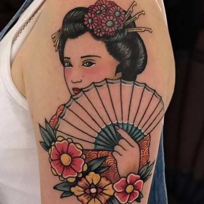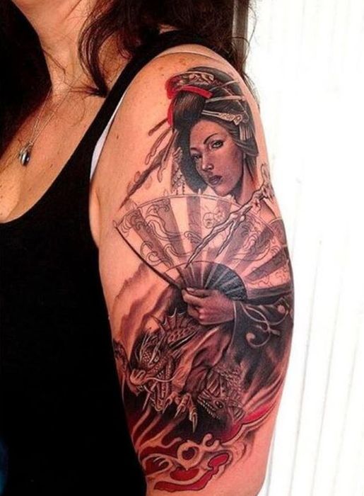 Stunning Japanese arm sleeve tattoos showcasing Geisha designs