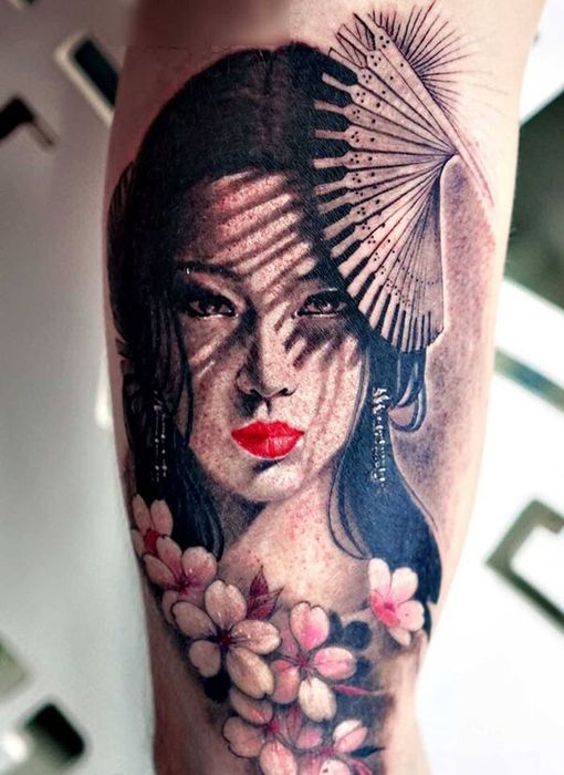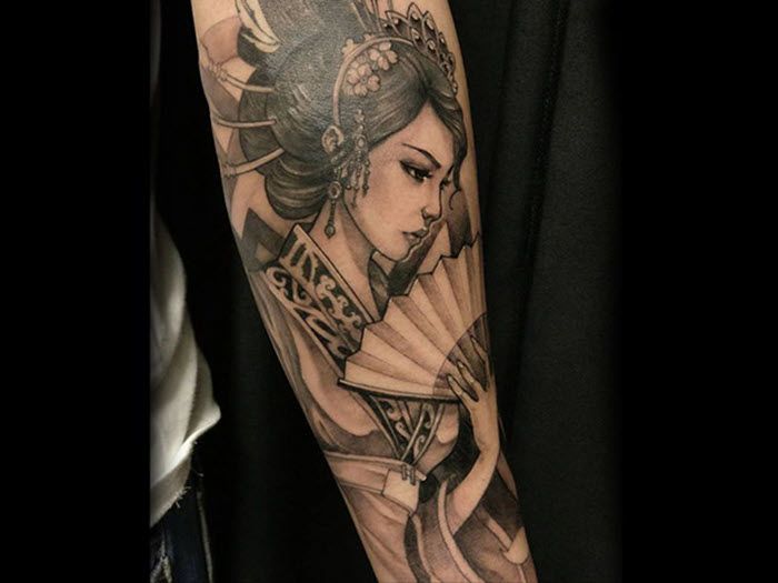 Stunning Geisha girl Japanese arm sleeve tattoos