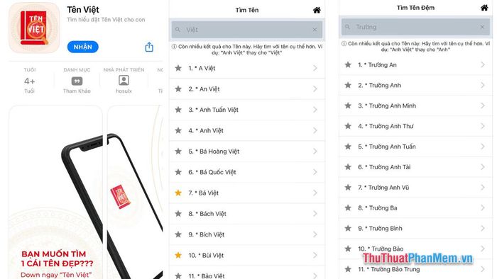 When talking about the best apps for naming children based on the parents' names, we can't overlook Tên Việt. This app, available on iOS, allows parents to easily search for meaningful and unique Vietnamese names. With a user-friendly interface, it not only provides information about the meanings of various Vietnamese names but also allows parents to explore popular names commonly used within the Vietnamese community.