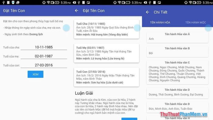 Additionally, this app offers suggestions for naming your child based on the principles of Feng Shui. This can bring joy, luck, and create favorable conditions for the child’s development. Not only that, but Định Danh Kỳ Thư also allows you to name businesses, such as a café, restaurant, or company, helping you come up with unique and advantageous names for your business ventures.