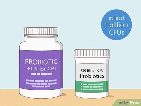 Select a product with a minimum of 1 billion colony-forming units (CFUs). CFU, or Colony Forming Units, is a term from microbiology, used to describe the number of bacterial cells in a sample that can form colonies. For probiotics, a higher CFU count ensures that more bacteria survive their journey through your digestive system. This is important because stomach acid can destroy some of the bacteria before they reach your gut. If a product contains at least 1 billion CFUs, enough bacteria will survive to provide benefits.