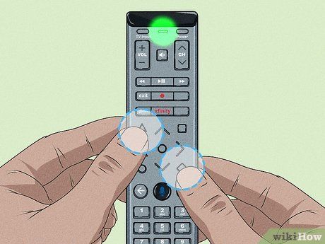 Press buttons A and D if you're using the XR15 remote. Button A is triangular, and button D is diamond-shaped. Hold both buttons until the light changes from red to green. Then, press the numbers 9, 8, and 1 to finish the reset. It takes about 5 seconds for the light to turn green. Buttons A and D are located near the center of the remote.