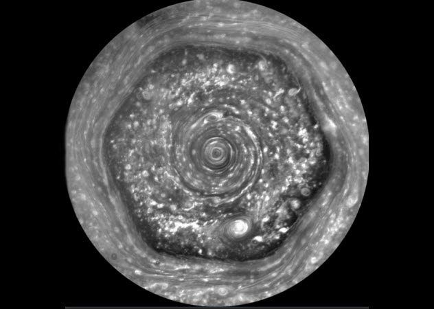 During the Voyager missions in the 1980s, a strange hexagonal shape was discovered at the polar regions of Saturn. The design appeared unnervingly precise, leading some to believe that it might be artificially created due to its exact measurements and perfectly straight edges.