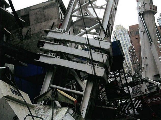 On March 15, 2008, a tower crane approximately 76 meters (250 ft) tall collapsed during the construction of a 43-story concrete-framed condominium at 303 East 51st Street in Manhattan. Six construction workers were killed, along with a civilian who lived in a nearby apartment, when part of the crane crashed into the building. The workers were placing lateral tie beams on the 18th floor to support the crane. About an hour before the collapse, the crane had been 'jumped,' meaning four additional sections were added to the lower mast.