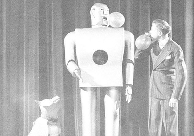 Here, we introduce two robots known for smoking cigarettes. The first is Elektro, a towering 213-centimeter (7’0″) robot showcased at the 1939 World’s Fair. Accompanying Elektro was Sparko, his robotic English terrier dog.