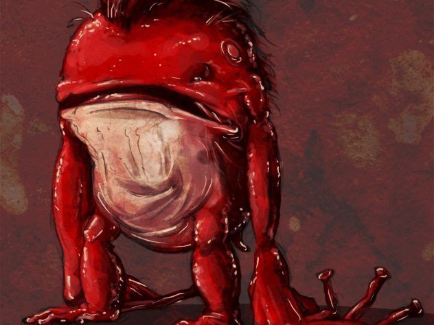 The yara-ma-yha-who stands at 1.2 meters (4 feet) tall. It hides in trees, waiting for someone to wander beneath it before pouncing. Lacking teeth, it uses the suckers on its hands to drain almost all the blood from its victim. Once the person is nearly lifeless, the yara-ma-yha-who swallows them whole. However, it isn't satisfied with just one meal—later, it will vomit the person back up, perhaps to feast on them again.