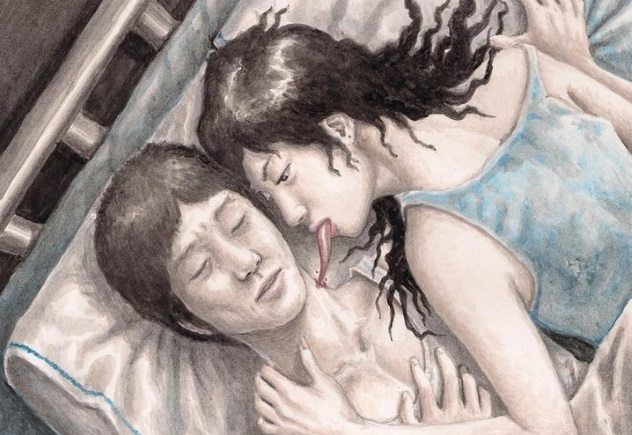 The mandurugo maintains her beauty by day, but when night falls, she seeks out an unfortunate man. Using a sharp, hollow, barbed tongue, she strikes at his neck, draining his blood. In some versions of the myth, the mandurugo may marry several times, with each husband mysteriously wasting away as she secretly feeds on his blood during the night. In these stories, a wise man who suspects his bride to be a mandurugo may sleep with a knife at the ready. If he feels the touch of her tongue, he stabs her heart. It's easy to imagine that such a myth might lead to a rather disastrous honeymoon.