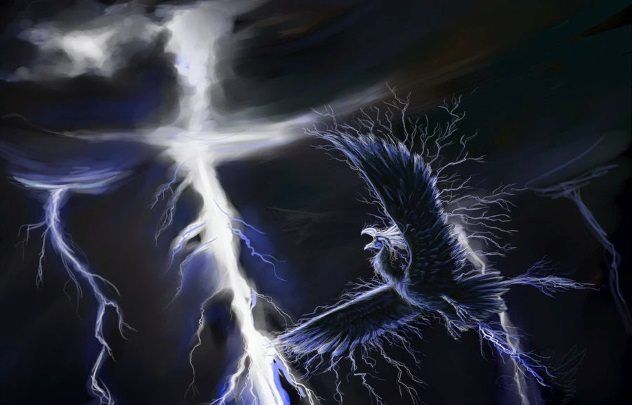 Occasionally taking the guise of a handsome young man or woman, the impundulu, or 'lightning bird' as its alternative name suggests, can also manifest as a bird. The sound of its wings flapping creates thunder, and the flash of lightning occurs when it dives toward the Earth to lay its eggs. It is the job of skilled shamans to locate these eggs to prevent the world from being overrun by lightning birds.