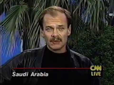 CNN reporter Charles Jaco became well-known for his live coverage during the First Gulf War, but conspiracy theorists allege his broadcasts were staged. While Jaco claimed to report live from a Saudi Arabian hotel rooftop, skeptics argue the setting was a studio with fake palm trees and a blue backdrop. They highlight videos where Jaco delivers serious updates, contrasting them with behind-the-scenes footage showing him joking with the crew in what appears to be a studio. Critics claim background sounds of sirens and missiles were added effects, and that “the acting was unconvincing as Charles Jaco wore a gas mask, and his colleague Carl Rochelle donned a helmet.”
