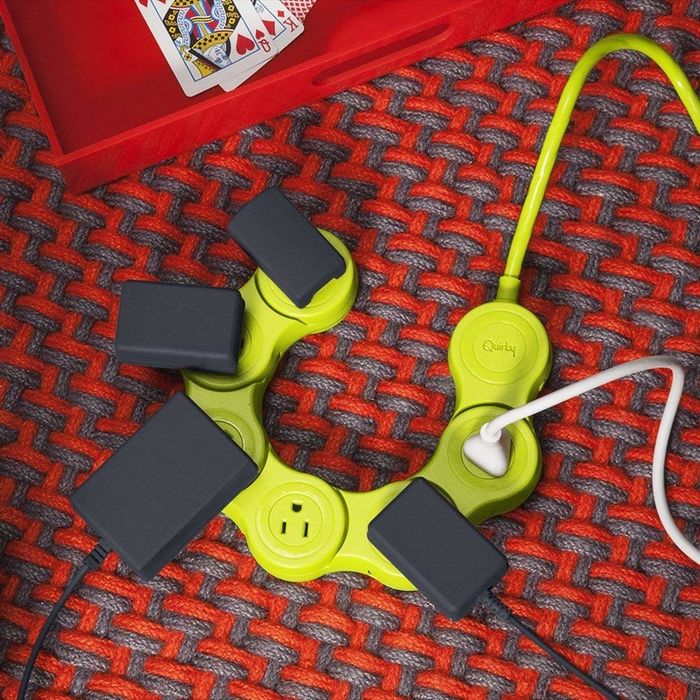 A brightly-colored power strip designed to twist into hard-to-reach spots, preventing mishaps before they even have a chance to occur.