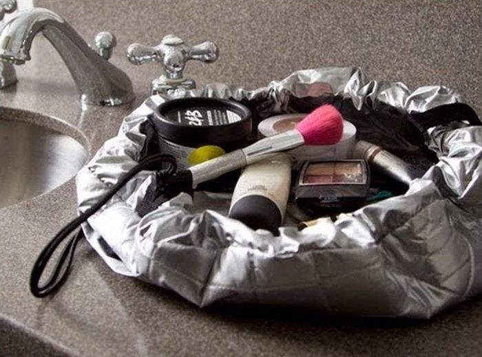 A drawstring makeup pouch helps you avoid slipping on that mascara tube rolling around—it's the new banana peel, haven't you heard?