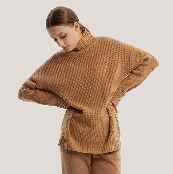 18. A wool and cashmere oversized turtleneck sweater from Gentle Herd boasting cable-knit sleeve detailing to add *just enough* flair to a timeless wardrobe staple.