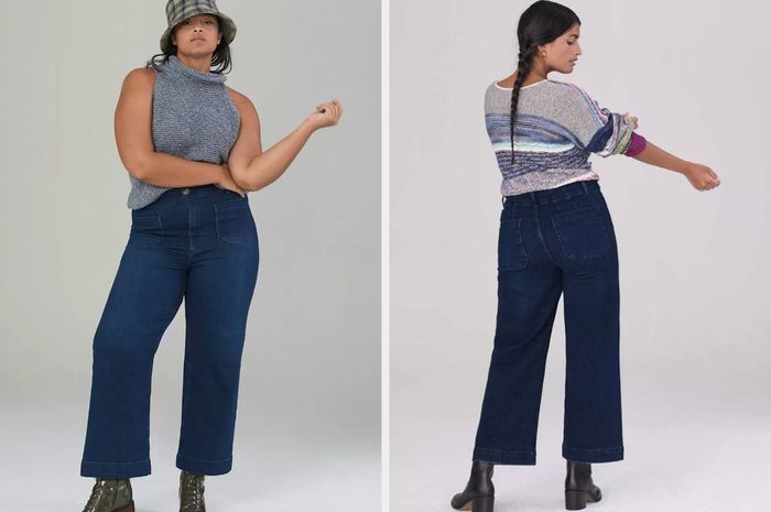 18. A pair of deep blue wide-leg jeans with crisp lines and a high waist design that'll make your friends say, "Oh, snap!" Roll up the hem for a more casual vibe or keep them unrolled for a more polished look.