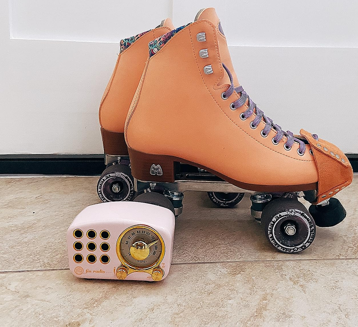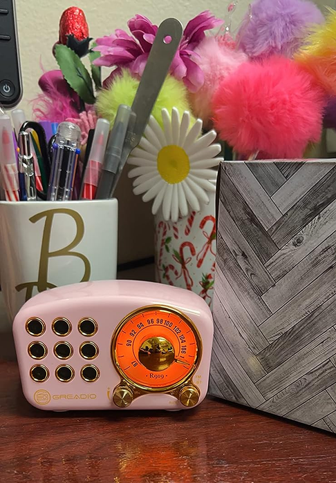 14. A retro Bluetooth speaker that will make you feel like the original Barbie from the '50s. It makes for the cutest addition to your office desk if you like to have some background noise while working. (It even has an FM radio function!) Reviewers say that it gets super loud for its small size, so you can also use it for your next pool party!