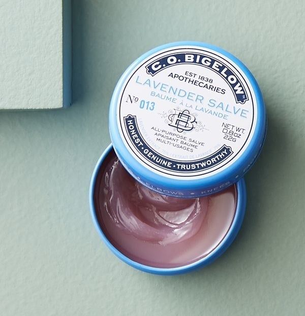 28. A lavender salve perfect for soothing lips, face, cuticles, elbows, and knees with quick relief, all without the strong menthol scent.