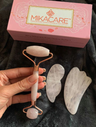 32. A rose quartz facial roller and gua sha to add a touch of elegance to any bathroom counter. These tools are said to relieve headaches and boost facial circulation.