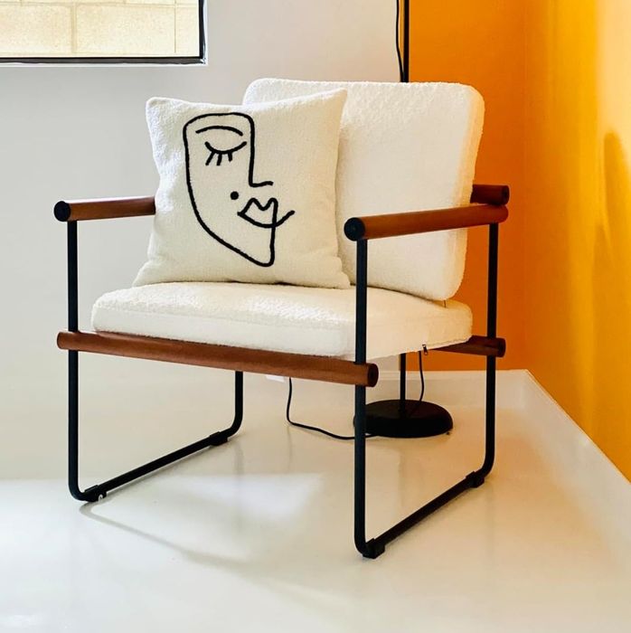 13. A modern accent chair if you like clean lines and this year's most popular fabric — Boucle, a fabric with an irregular texture and appearance made from yarn woven from irregular, often curly threads. This chair is the epitome of effortless coolness.