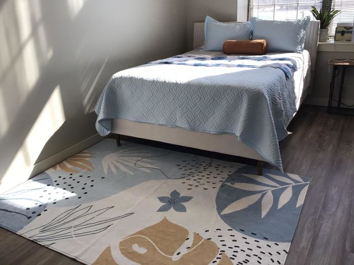 12. A washable area rug featuring a sleek minimalist botanical design, offering a soft place to step onto each morning as you get out of bed. It has non-slip grips underneath to keep it securely in place.