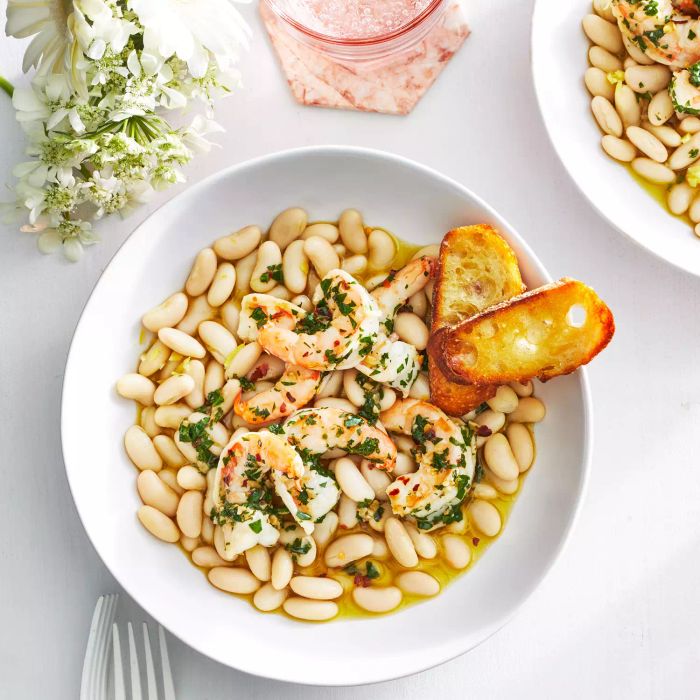 Another two-for-one protein dinner, this super-sophisticated recipe features shrimp seasoned with garlic, red pepper, and a touch of butter on a bed of lemony beans. (We call for cannellinis, but you can use gigante or cranberry beans if that's what you have in your pantry.)