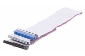 An IDE or PATA hard drive uses a wide, flat or thick cable to connect to the computer’s motherboard.