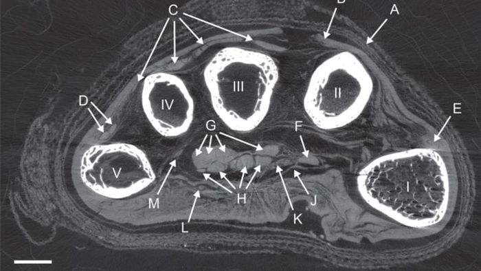 Jenny Romell, et al./RadiologyThis decade-old technology has been routinely used by doctors to study soft tissues like organs and veins in living patients. However, it had never been applied to a mummy until recently. Researchers collaborated with the Museum of Mediterranean and Near Eastern Antiquities in Stockholm to examine a mummified human right hand dating back to 400 BCE in Egypt. By using a phase-contrast CT scanner, they obtained images with a resolution of 6 to 9 microns, allowing them to clearly observe layers of skin, individual cells in the connective tissue, and blood vessels in the nail bed—without harming the artifact. In the past, similar studies would have required using a scalpel to examine the tissues.
