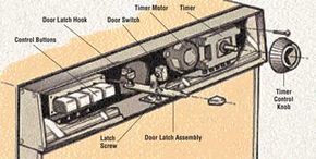 Since the timer regulates numerous operations, a malfunctioning timer can lead to various issues. The timer is a complex part, so it’s recommended not to try fixing it yourself. To test the timer, use a VOM set to the RX1 scale. First, remove the front control panel to access the timer, which is located right behind the main timer control knob. Disconnect one of the wires from the timer's terminal, and attach one probe of the VOM to each terminal. If the meter reads zero, the timer is functioning correctly. If it reads higher than zero, the timer is defective and needs replacing.