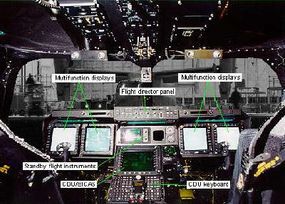 The instrument panels feature multifunctional displays, similar to those found in the space shuttle's modern glass cockpit. These displays provide vital engine data (including oil pressure, temperatures, and hydraulic pressures) as well as flight information (such as fuel levels, attitude, and engine performance).
