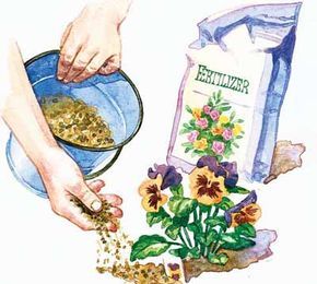 Granular fertilizers release nutrients more rapidly than organic alternatives. By applying a handful of 5-10-5 around each plant (a method known as side-dressing) in the spring and again mid-summer, annuals receive a boost that keeps them thriving and blooming throughout the season. Slow-release fertilizers should be used only once in spring.
