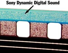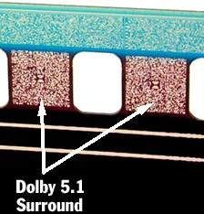 Dolby followed with its own digital format, known as Dolby Digital®. This system is also referred to as Dolby Digital 5.1® (referring to five audio channels plus a subwoofer channel), Dolby AC-3® (for Dolby’s third audio-coding method), or Dolby SR-D® (for Spectral Recording Digital). Although the basic speaker setup in Dolby Digital mirrors that of DTS and produces similar sound, it operates on a distinct system. Rather than storing audio on CDs, digital data is encoded directly into patterns on the film itself, placed between the sprocket holes.