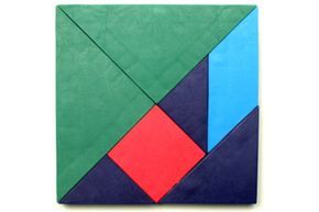 Tangrams belong to a category of puzzles known as dissection puzzles, a term used by mathematicians and puzzle experts to describe puzzles made from cut-out shapes that can be rearranged to form new figures. The best-known dissection puzzle is the classic jigsaw puzzle. However, tangrams differ in that they consist of only a few pieces that can be configured into an extensive variety of designs. A standard tangram set contains seven geometric shapes, or tans, all derived from a single square. These pieces include:
