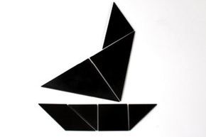 Mathematical figures are those whose base triangles can be arranged to fit a square grid. In other words, each shape is positioned such that at least one of its sides aligns perfectly horizontally or vertically [source: Koller]. Fully matched figures require each tan to have at least one edge and one corner, or vertex, aligned with another tan, meaning there are no isolated pieces with easily identifiable outlines. There are also fully aligned figures that may have dangling pieces, but at least one edge of the dangling tan must form a continuous line with the figure's border [source: Cocchini].