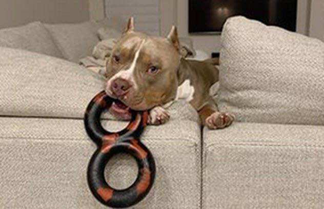 His Instagram page showcases one of his seemingly wild moments, where he runs in circles and jumps at his owner, attempting to grab a sloth toy. You’ll also find him sporting a homemade leaf helmet, enjoying John Legend music, and celebrating “National Tortilla Chip Day” with some chips.