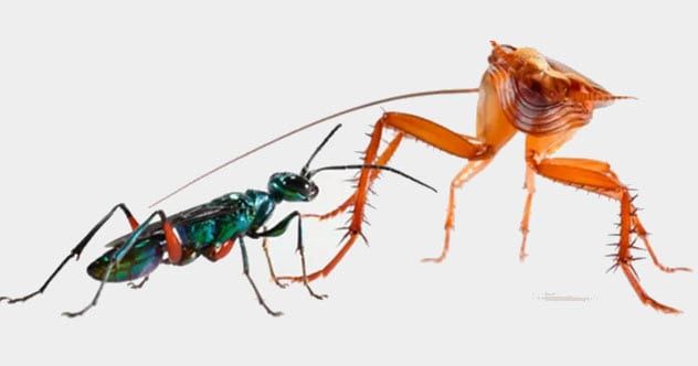 The second sting injects a neurotoxin that hijacks the cockroach’s nervous system. This allows the wasp to control the cockroach’s movements, leading it to a nest where the wasp lays eggs inside the still-living host. The hatched larvae then feed on the cockroach.