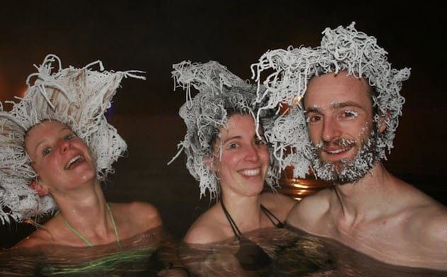 In 2011, Takhini Hot Springs officially kicked off the first-ever hair freezing competition to find the most creative and outrageous frozen hairstyles. The event quickly gained popularity, and now, each February and March, it attracts participants from around the world.