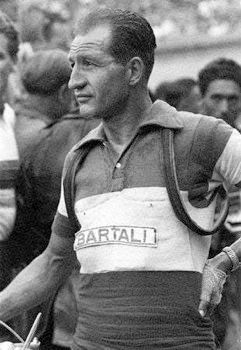 Gino Bartali was born in Italy on 1914. He has won the Tour de France twice, in 1938 and 1948, both times also winning the mountain competition, and the Giro D’Italia three times in 1936, 1937 and 1946, also here he won the mountain competition all three times. Bartali also won the Tour de Suisse in 1946 and 1947. Bartali was a good climber and a pioneer of derailleur gears. His style was unusual: he rarely danced on the pedals and often stayed in the saddle throughout a 15km climb. When others attacked, he stayed in the saddle but changed up gear, to a sprocket three teeth smaller. He rode smoothly on mountains but every now and then freewheeled, always with his right foot lowered with his weight on it. Then a second or two later he would start pedaling again.