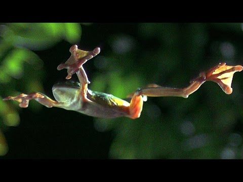 In 1869, British naturalist Alfred Russel Wallace discovered these frogs in the rainforests of Borneo and wrote: “The toes (are) very long and fully webbed to their very extremity, so that when expanded they offered a surface much larger than that of the body.”
