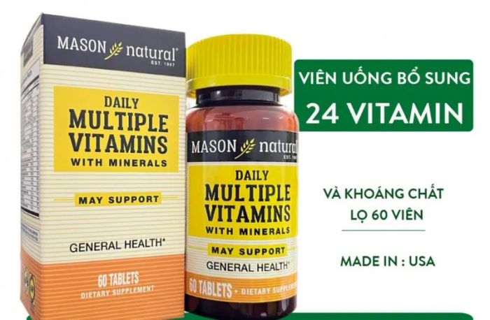 Mason Natural Daily Multiple Vitamins is a trusted and widely used multivitamin, well-known across the globe, including Vietnam. This supplement combines 24 essential vitamins and minerals such as Vitamin A, Vitamin C, Calcium, Iron, and more. It is recommended by healthcare professionals for individuals with low energy, weak immune systems, and those recovering from illness. Notably, it is also safe for pregnant women.