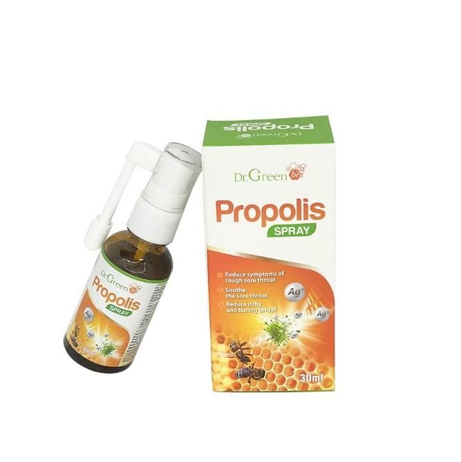 - Dr.Green Bee Propolis Throat Spray aids in the treatment of conditions like flu, tonsillitis, chronic pharyngitis, coughs from colds, dry cough, coughing with phlegm, hoarseness, loss of voice, laryngeal fibrosis, gum inflammation...