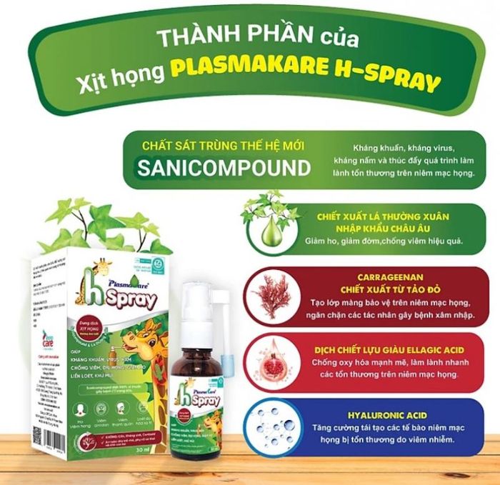 - PlasmaKare H-Spray is designed for children as young as 6 months. The formula features premium ingredients such as the Sanicompound antimicrobial complex, Carrageenan extract from red algae, Ivy leaf extract, and Hyaluronic acid.
