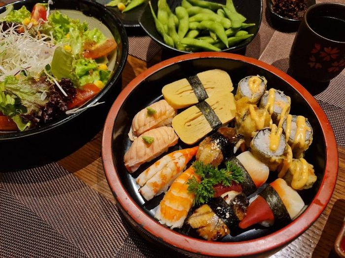 If you're a student craving sushi or sashimi, you no longer have to worry about the high prices! A top spot for all sushi lovers is Sushi Tí, located at 41 Huỳnh Tịnh Của, District 19, Bình Thạnh. Not only does it provide a comfortable dining space, but Sushi Tí also offers mouthwatering creations that will have you saying 'yes' the moment you see them. The sushi is not only delicious and affordable, but also beautifully presented. If you're a fan of salmon, you’ll definitely be impressed with the price of just 68K per serving.