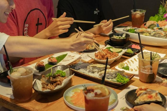 Japanese cuisine is often associated with high quality and expensive prices. However, in a small street corner, you can still find authentic Japanese food at very affordable prices – this is Sushi Cô Chủ Nhỏ. Sushi Cô Chủ Nhỏ is a well-known name among the youth community in Saigon. Starting as a small street-side stall, it has now expanded into a spacious five-story building, gaining even more love and trust from its customers.