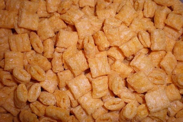 During the 1960s, cereals were heavily marketed to children, with sugary options dominating sales. Following the success of Post's Kix, the first puffed corn cereal, research indicated that kids preferred cereals that remained crunchy and floated in milk rather than turning soggy. Quaker responded by developing a blend of corn and oat cereal, molded into small, yellow squares.