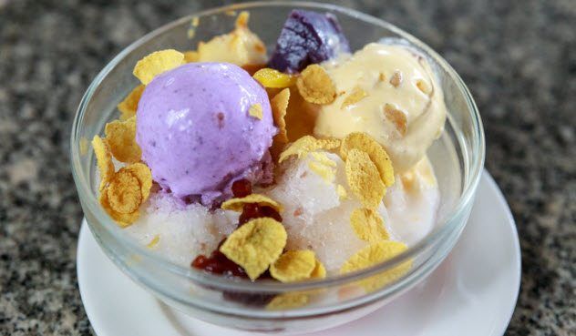 Ube is also a common ingredient in halo-halo, a traditional Filipino shaved ice dessert. Halo-halo combines ice, evaporated milk, and a rainbow of colorful toppings for a refreshing treat.