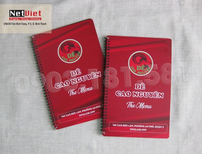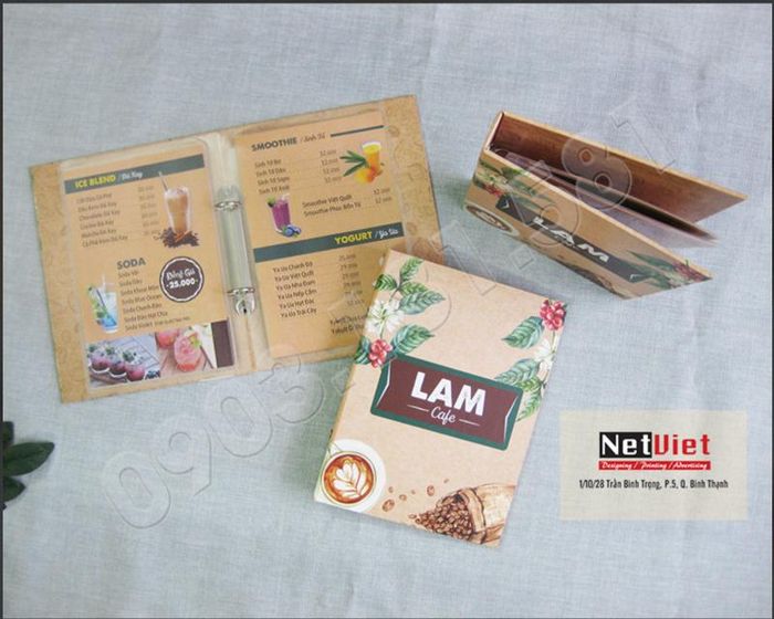 Net Viet Design and Printing Company specializes in creating and printing a wide range of menus for restaurants, hotels, resorts, cafes, and more. With years of experience, Net Viet ensures that customers receive the best design solutions at competitive prices. The company offers various menu styles and prints on diverse materials, such as leather-bound, hardcover, wooden, acrylic, ring-bound, and spiral-bound menus.