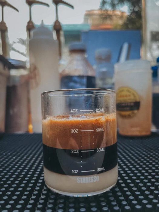 The ambiance at NẪU Coffee isn't anything extravagant, offering both indoor and outdoor seating. The indoor space is rather small with just a few tables, but if you prefer fresh air and watching the street life, the outdoor sidewalk seating is a great choice. The standout feature here is the delicious drinks. Although primarily a coffee shop, the coffee is prepared in a unique way, making it hard not to become addicted if you're a coffee enthusiast. Imagine waking up on a Sunday morning, realizing you don't have to rush to prepare for work or school, just hop on a bike, have breakfast, and enjoy a cup of delicious coffee while savoring the calm of Tuy Hoa's early morning street view. It's an indescribable feeling, especially when you experience it at NẪU Coffee.