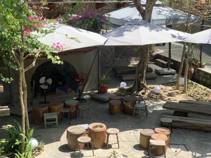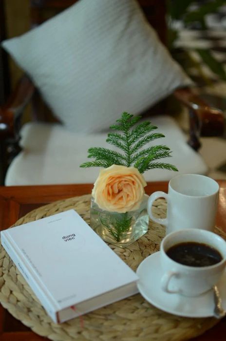 Continuing the list of the best coffee spots in Phú Yên is the uniquely named Chút nắng, chút gió, chút cỏ hương mây - one of the most distinctive names around. This café is beloved by many for its delicious beverages and affordable prices. When you visit, you can always count on a sweet-smelling cup of tea, a beautiful garden, and a playlist of soothing songs to uplift both you and your friends.