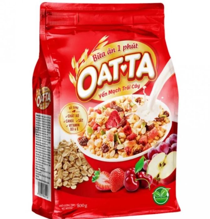 Oatta is a well-known brand specializing in nutritious foods that promote good health. Oatta products are of high quality and packed with nutrition, making them a popular choice for many. The Oatta Nutritious Cereal is one of the leading instant cereals in Vietnam. Made from whole oat grains, combined with fruits and fresh milk rich in essential vitamins and minerals, this product provides a complete nutritional boost.