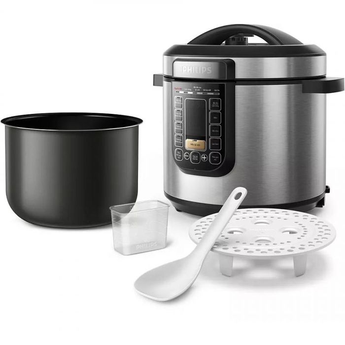- Construction: The pressure cooker features a modern, user-friendly design with intuitive controls. The non-stick aluminum inner pot ensures even heat distribution, reducing cooking time, while the large heating element and powerful capacity guarantee great performance. Typically, Philips pressure cookers have a 5-6 liter capacity, making them ideal for most households.