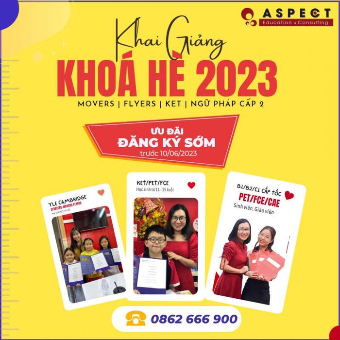 ASPECT English Center strives to provide a modern, creative, and friendly learning environment where students can enjoy the process of learning English. With a team of highly qualified and experienced instructors, the Cambridge Language Academy prioritizes student outcomes. The center’s distinctive approach lies in the effective integration of Vietnamese test preparation experts and native English-speaking teachers. Depending on the student’s proficiency level, the center assigns the most suitable instructors to provide the best support for each learner.