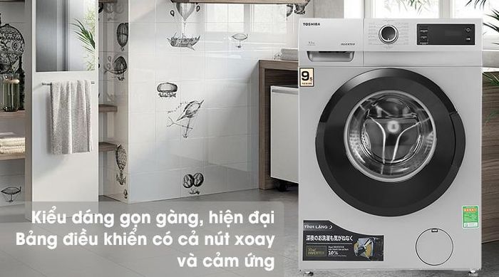 The Toshiba 9.5kg TW-BK105S3V(SK) washing machine features the powerful Greatwave technology, combining three advanced systems (Flush waves, Real Inverter, and Color care) to generate a strong water wave flow, effectively removing stains and optimizing washing performance. Thanks to Color care, your clothes will experience less fading and distortion post-wash. Powered by Inverter technology, this washing machine adjusts the motor's speed to ensure optimal water and energy use while delivering superior cleaning results. With a stylish European-inspired front-loading design, it also offers a bilingual English-Vietnamese control panel, with easy-to-use rotary and touch buttons.